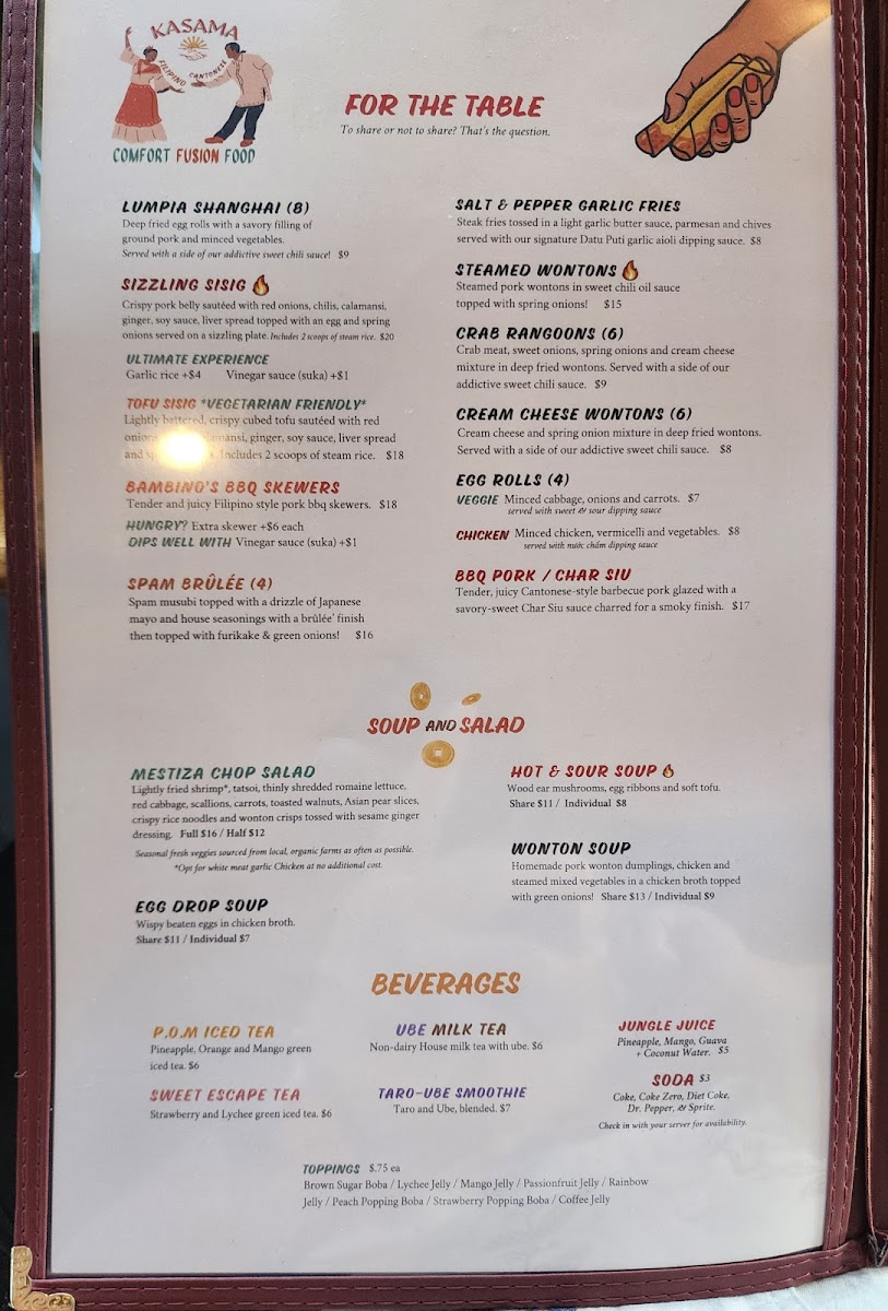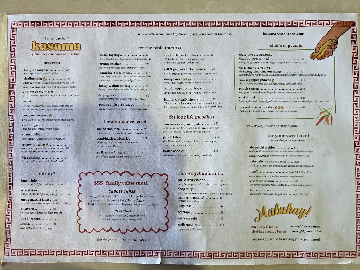 Kasama Restaurant Menu